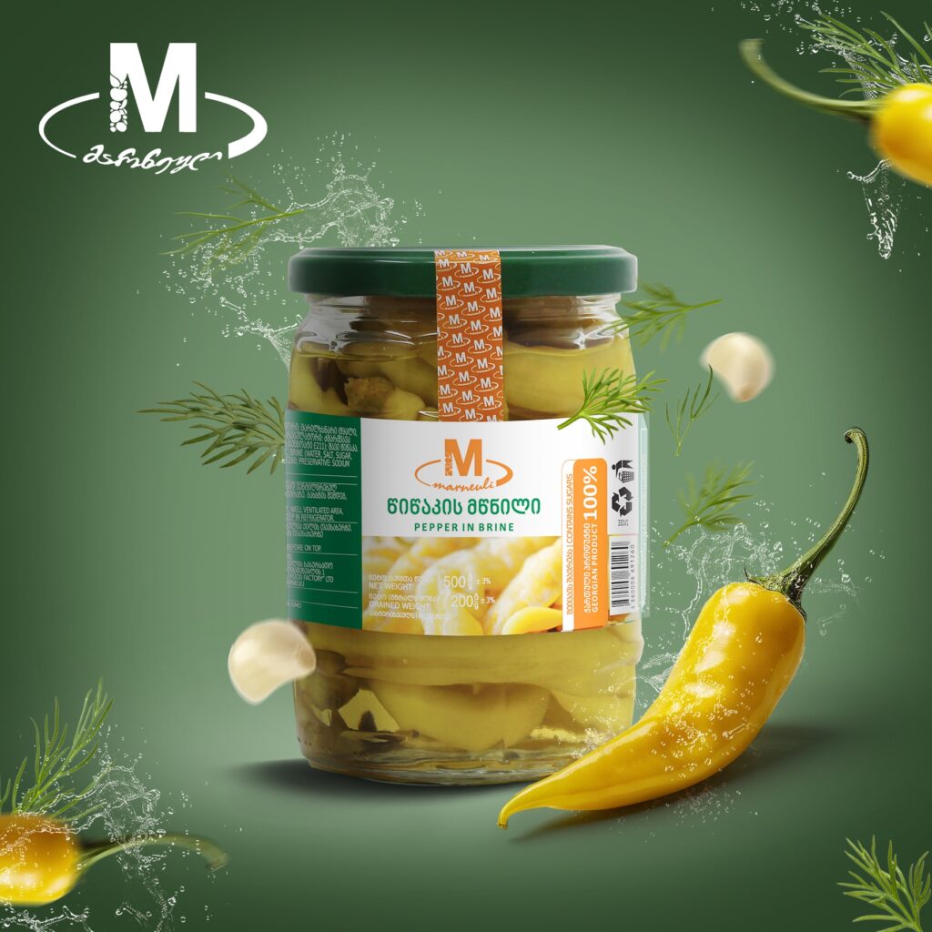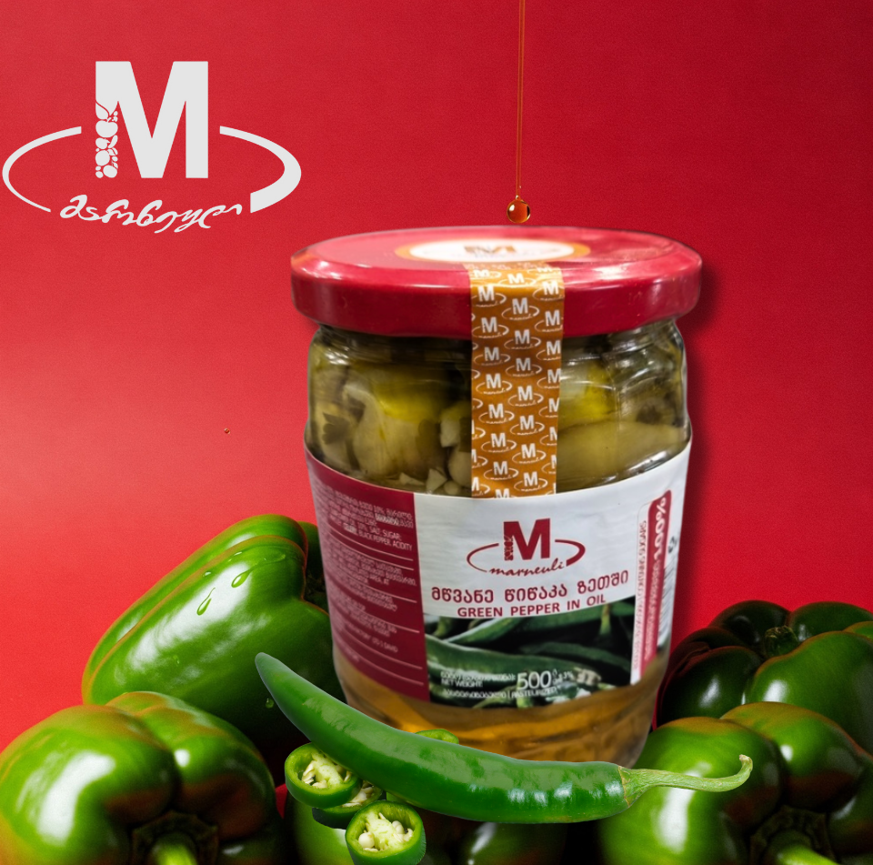 OTHER PRODUCTS Walnut churchkhela Jonjoli marinated 5kg Grape leaves-500 g Marneuli pickled peppers 1000g. Marneuli salad Ajapsandal 530g. Marneuli pickled garlic 1050g. Marneuli pickled tomatoes 1000g. Marneuli Jonjoli 550g. Marneuli paprika in oil 500g.
