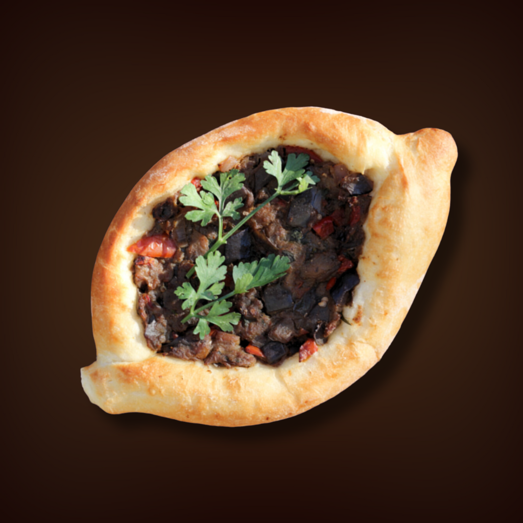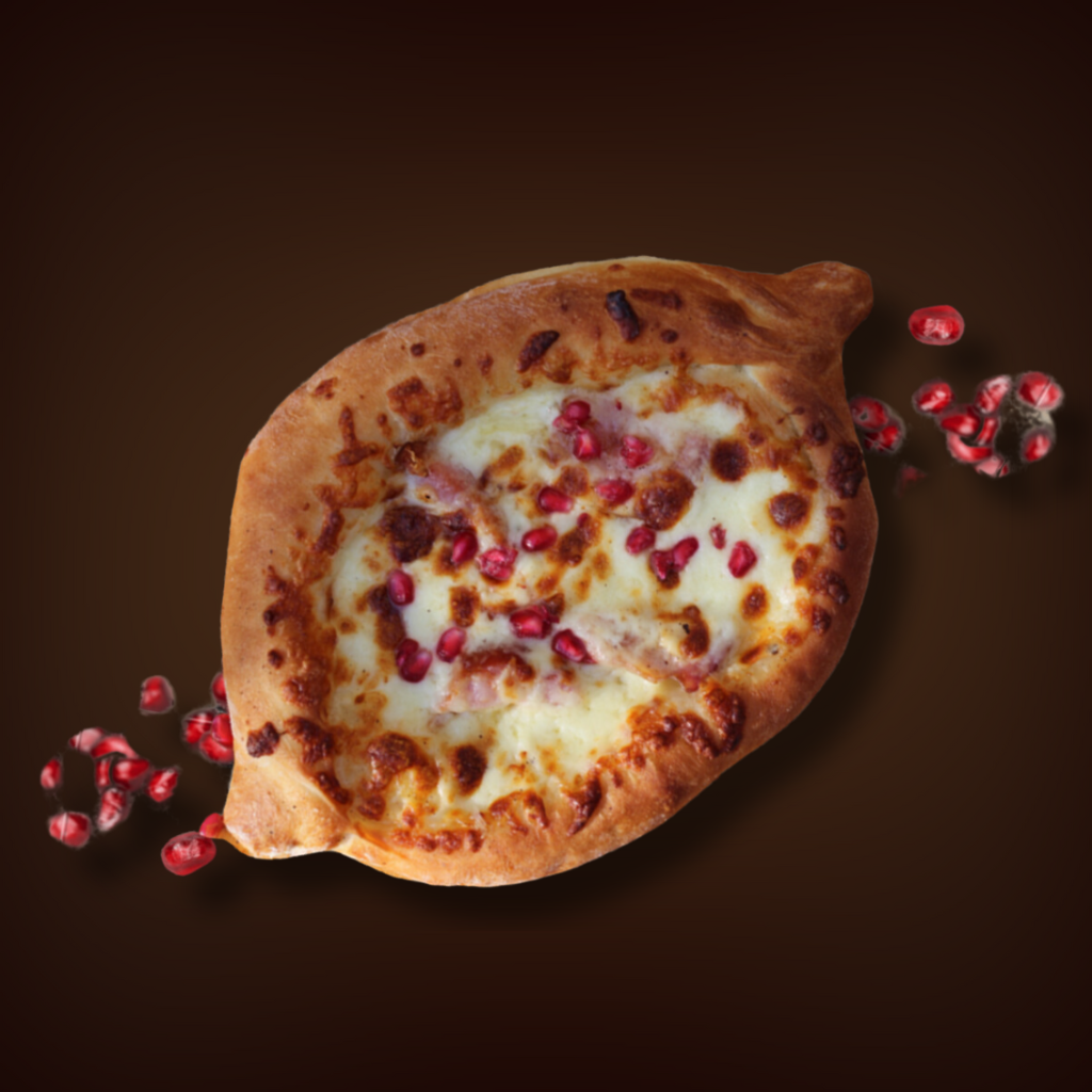 Грузинский пирог в форме лодочки с сыром, беконом и гранатом